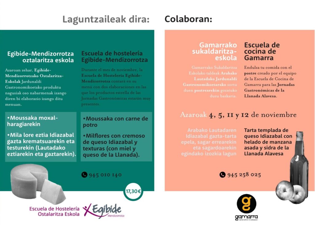 Azaroaren 4, 5, 11 eta 12an, Gamarrako sukaldaritza-eskola parte hartuko du, eskolak berak eskualdeko produktuetan oinarrituta diseinatu duen postre batekin: Idiazabal gazta-tarta epela, sagar errearekin eta sagardoarekin egindako izozkia lagun.
