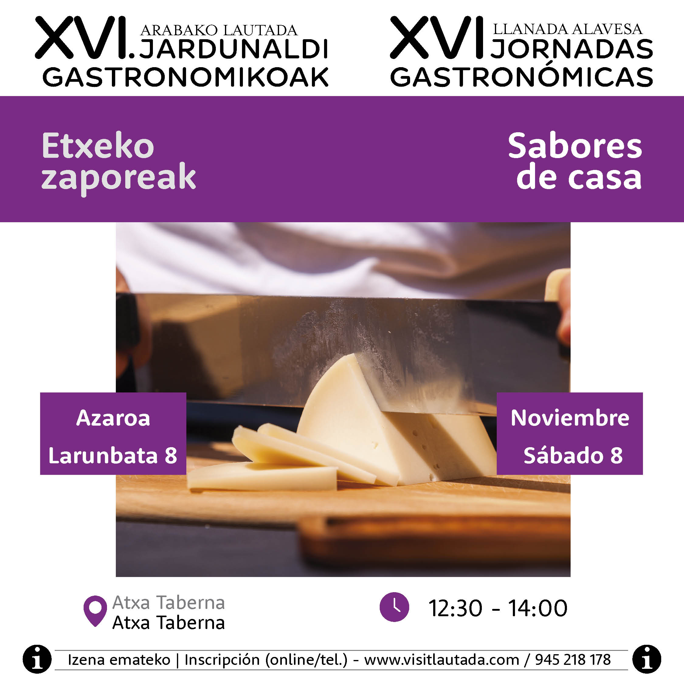 - Etxeko zaporeak: Larunbata, azaroak 8, 12.30tik a 14.00etara Atxa Tabernan, Araia.